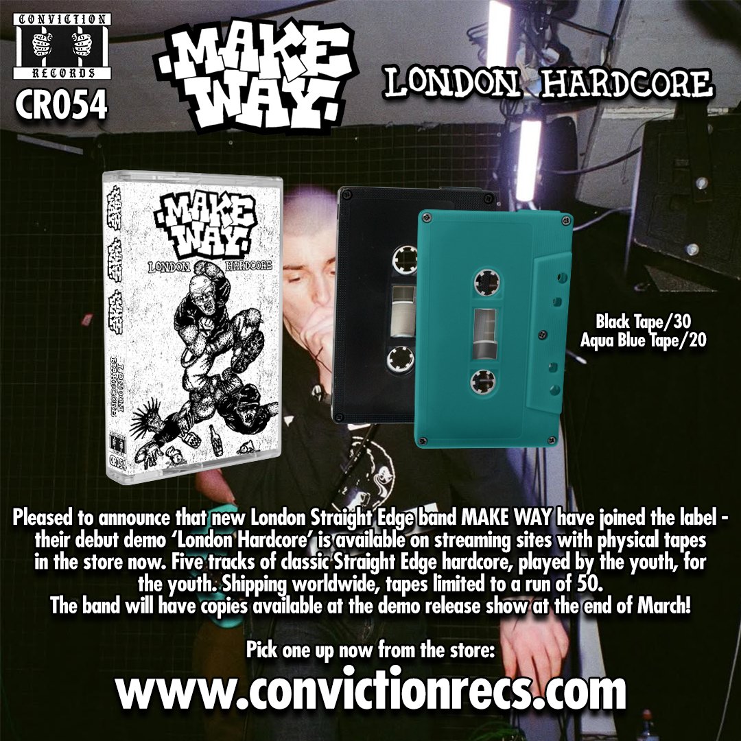 Pleased to announce that new London Straight Edge band MAKE WAY have joined the label - their debut demo ‘London Hardcore’ is available on streaming sites with physical tapes here! Five tracks of classic Straight Edge hardcore, played by the youth, for the youth.