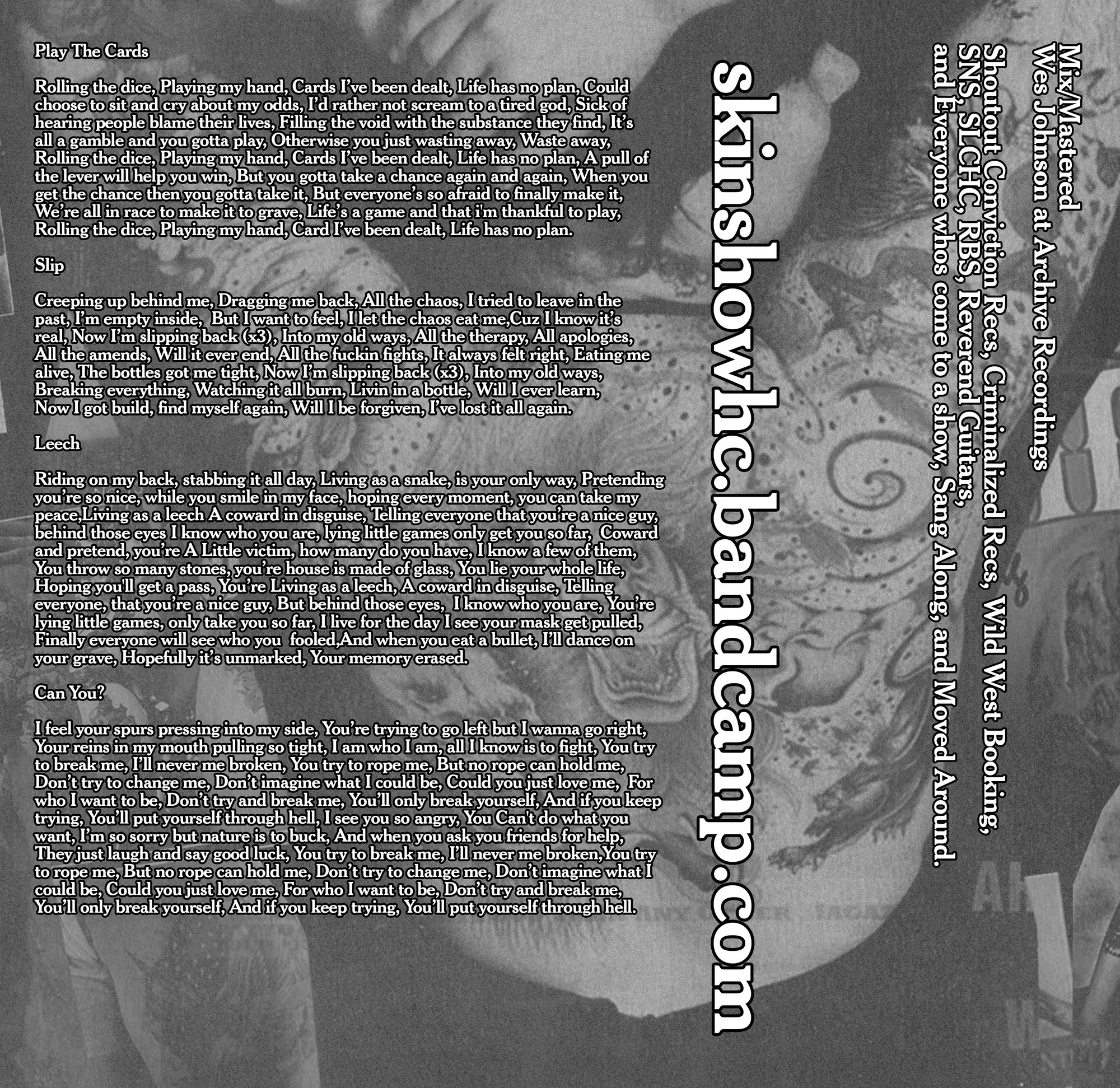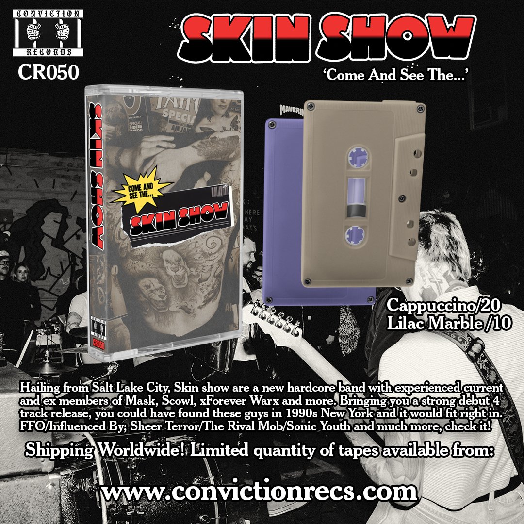 Hailing from Salt Lake City, USA, Skin Show is the project of former SCOWL guitarist Malachi - who wanted to take a step back from the chaotic life of full time touring, but still write music with his friends. Featuring members of xForever Warx, Mask, and more, the band comes straight out of the gate with a solid 4 track release, with influences ranging from Sheer Terror, The Rival Mob, Sonic Youth and more. Limited to 30 cassettes, with 10 on lilac marble shells and 20 on cappuccino marble shells. Unfortunately the price of everything has increased again so these tapes are slightly higher priced than our normal releases. Distros get in touch if you'd like copies!